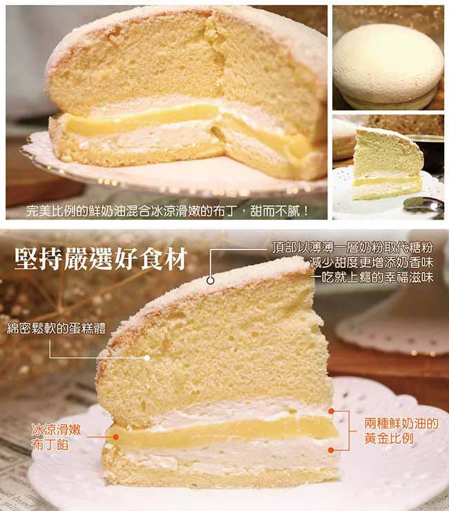 獨家!!桃園波士頓派名店,限定布丁口味!綿密蓬鬆的蛋糕體,搭配兩層新鮮的進口鮮奶油,上層撒上濃郁的奶粉,濃郁奶香入口即化,吃起來甜而不膩。